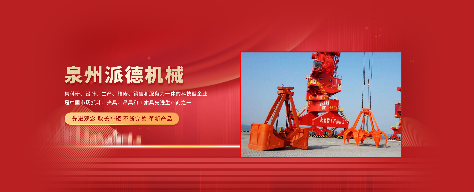 泉州派德機械有限公司成立于2012年5月,位于全國文明的古城福建泉州,公司擁有各類型專業員工82人,其中高級工程師1人,工程師4人,助理工程師5人,是一家集科研、設計、生產、維修、銷售和服務為一體的科技型企業,是中國市場抓斗、夾具、吊具和工索具先進生產商之一。產品采用國內外先進的設計方案、技術規(guī)范、制造過程、工藝流程和服務,憑借在抓斗、夾具、吊具和工索具領域的超前設計理念和成熟的技術、工藝和管理,在抓具領域迅速崛起。